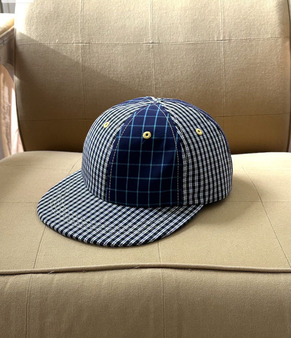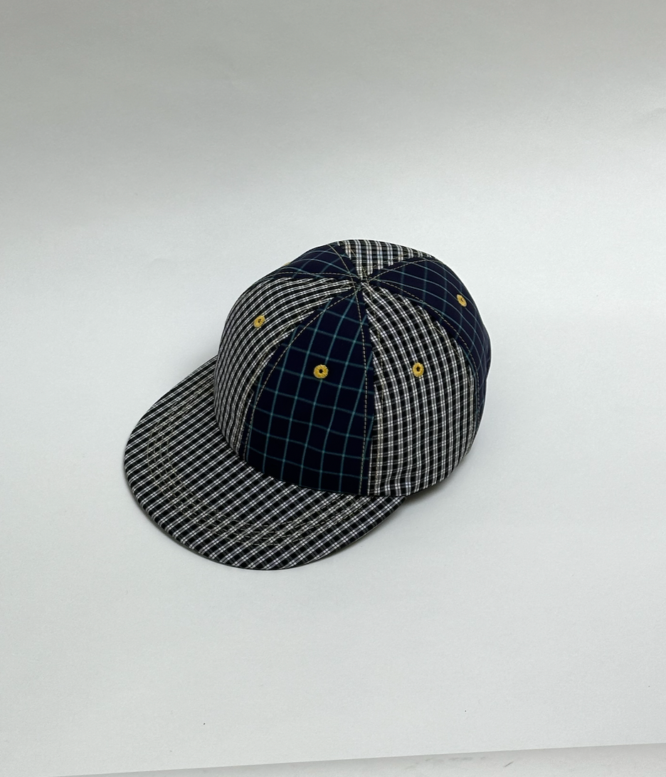A fun new cap for the season is this low profile six panel cap with a flat round bill. Made with a mix of the season’s checks and windowpane Italian fabrics. fused with cotton. Made in NYC.